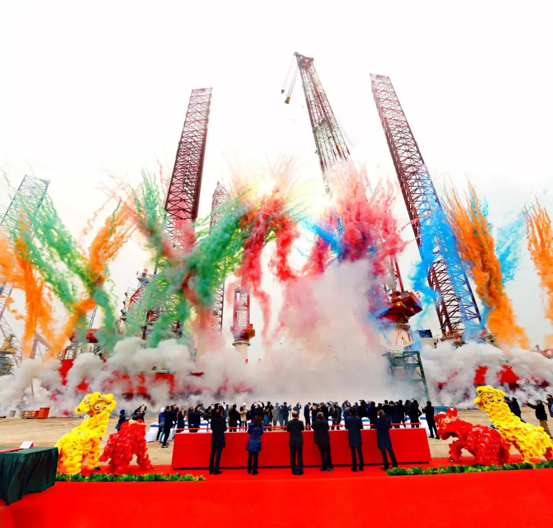 2月18日,大船海工举行了国内第一座油电混合动力自航自升式风电安装平台“精铟 03” 的交付仪式。大连船舶重工集团海洋工程有限公司郭炜董事长,广东精铟海洋工程股份有限公司董事长李光远,广东省佛山市南海区里水镇邓秀娟镇长,江苏龙源振华海洋工程有限公司曹春潼总经理,中国船级社(CCS)大连分社总经理张辉以及精铟海工股东代表罗斌华出席并共同为项目交付仪式推杆。广东精铟海洋工程股份有限公司副总经理张静波致辞并宣布启动仪式。